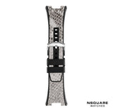 錶帶:黑色橡膠錶帶搭配白色蟒蛇紋皮革。